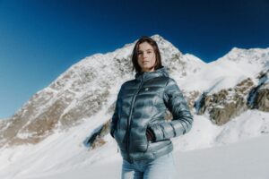 Nel mondo skimo, il settore più identitario della FW25, questa transizione prende forma concreta. La linea Alagna vive una seconda giovinezza nella sua versione 2.0, alleggerita e ottimizzata nei volumi, mentre fa il suo debutto il completo Pizzo Bianco, progettato per chi chiede protezione assoluta sul fronte e massima libertà traspirante sulla schiena. Al loro fianco arriva anche la Alagna Down Jacket, pensata per offrire calore attivo e gestire in modo dinamico l’intensità dello sforzo: piuma sintetica performante, costruzione funzionale e attenzione a peso e ingombro ne fanno uno dei capi più versatili della stagione, ideale come strato termico sia in attività sia nelle pause in quota.